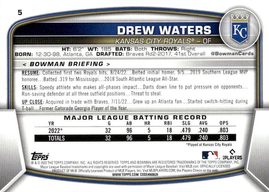 2023 Topps Bowman Drew Waters RC Kansas City Royals #5