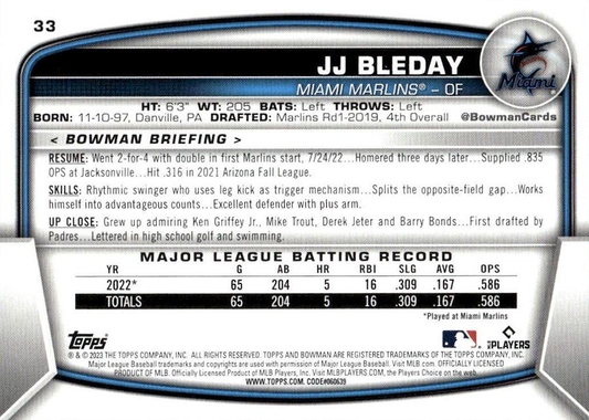 2023 Topps Bowman JJ Bleday RC Miami Marlins #33