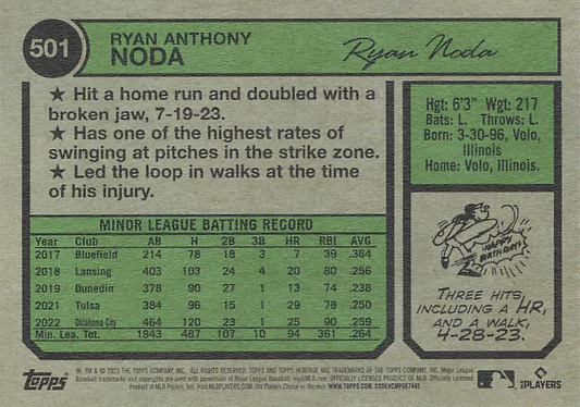 2023 Topps Heritage Ryan Noda RC Oakland Athletics #501