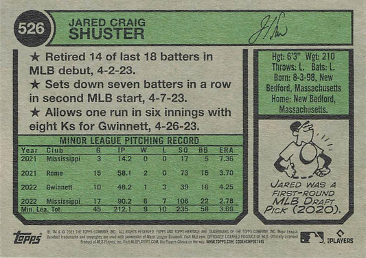 2023 Topps Heritage Jared Shuster RC Atlanta Braves #526