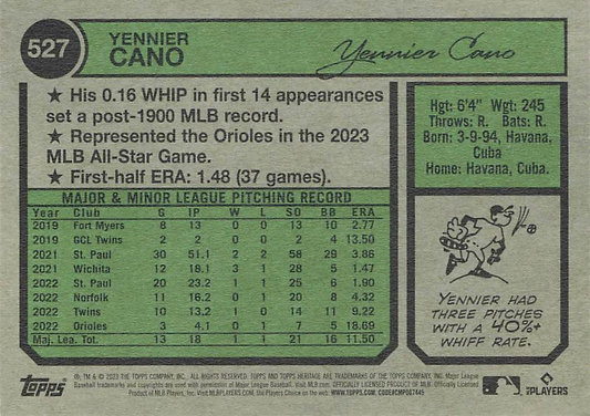 2023 Topps Heritage Yennier Cano RC Baltimore Orioles #527
