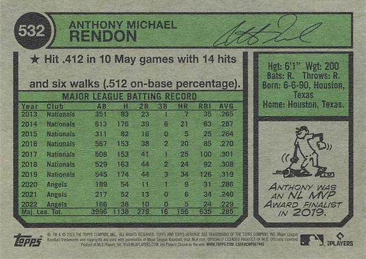 2023 Topps Heritage Anthony Rendon Los Angeles Angels #532