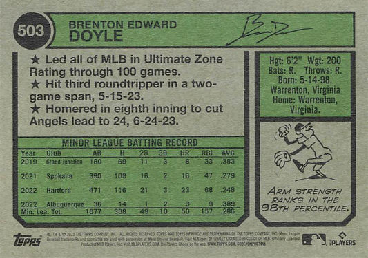 2023 Topps Heritage Brenton Doyle RC Colorado Rockies #503