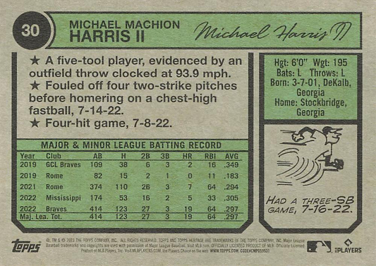 2023 Topps Heritage Michael Harris II ASR, RC Atlanta Braves #30