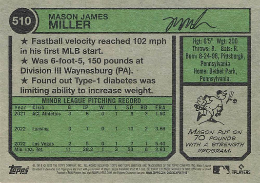 2023 Topps Heritage Mason Miller RC Oakland Athletics #510