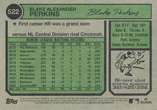 2023 Topps Heritage Blake Perkins RC Milwaukee Brewers #522