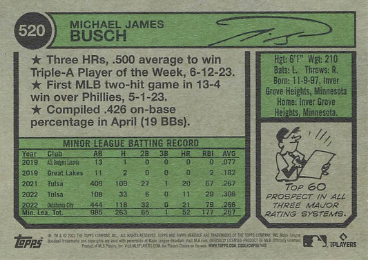 2023 Topps Heritage Michael Busch RC Los Angeles Dodgers #520