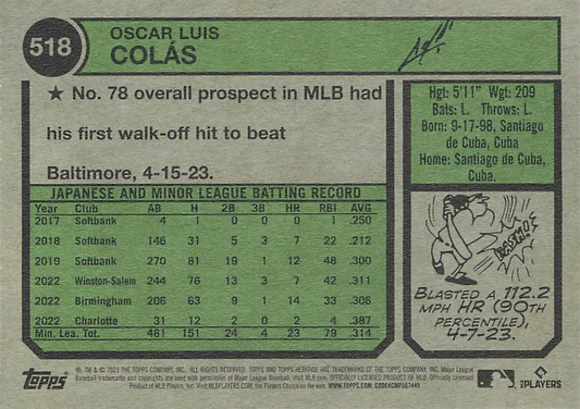 2023 Topps Heritage Oscar Colás RC Chicago White Sox #518