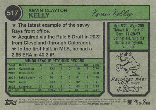 2023 Topps Heritage Kevin Kelly RC Tampa Bay Rays #517
