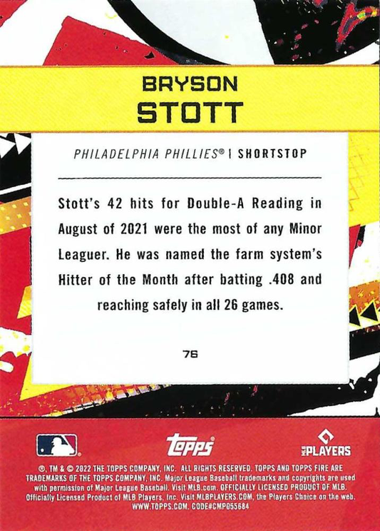2022 Topps Fire Bryson Stott RC Philadelphia Phillies #76