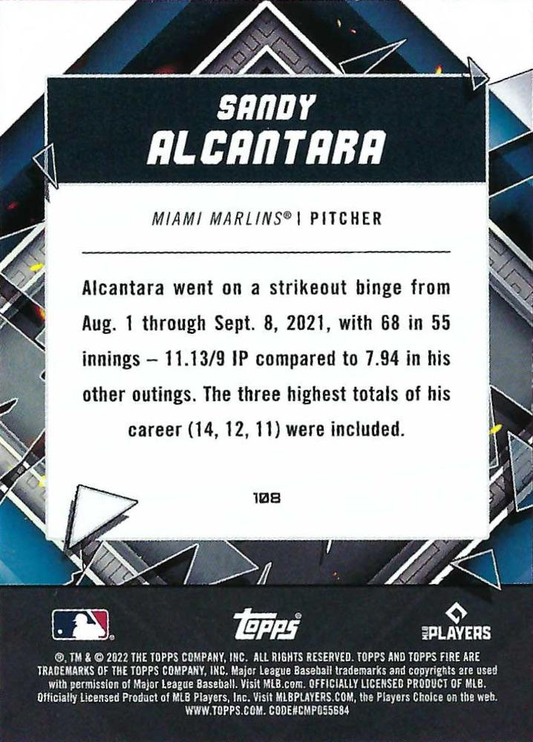 2022 Topps Fire Sandy Alcantara Miami Marlins #108