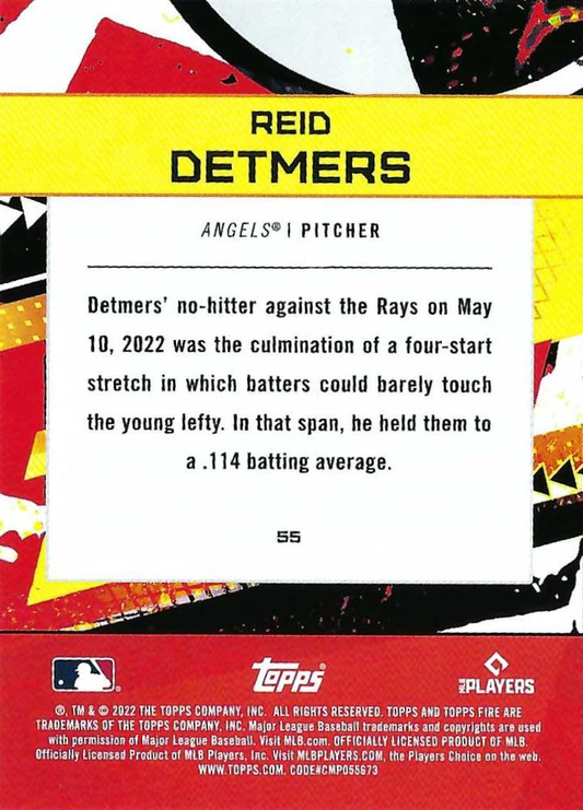2022 Topps Fire Reid Detmers RC Los Angeles Angels #55