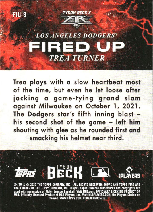 2022 Topps Fire Fired Up Gold Minted Trea Turner Los Angeles Dodgers #FIU-9