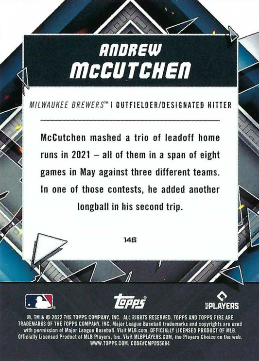 2022 Topps Fire Andrew McCutchen Milwaukee Brewers #146