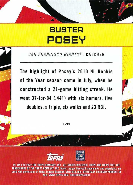 2022 Topps Fire Buster Posey San Francisco Giants #170