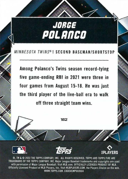 2022 Topps Fire Jorge Polanco Minnesota Twins #162