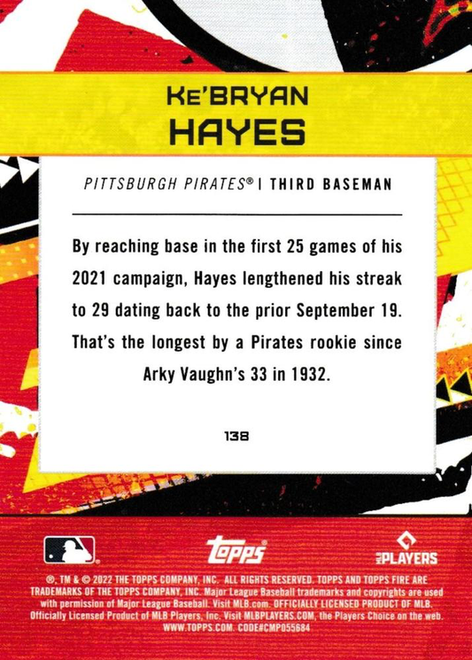 2022 Topps Fire Ke'Bryan Hayes Pittsburgh Pirates #138