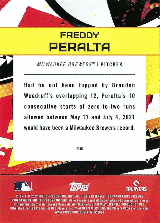 2022 Topps Fire Freddy Peralta Milwaukee Brewers #118