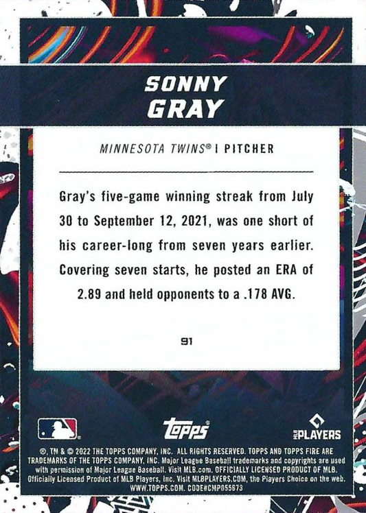 2022 Topps Fire Sonny Gray Minnesota Twins #91