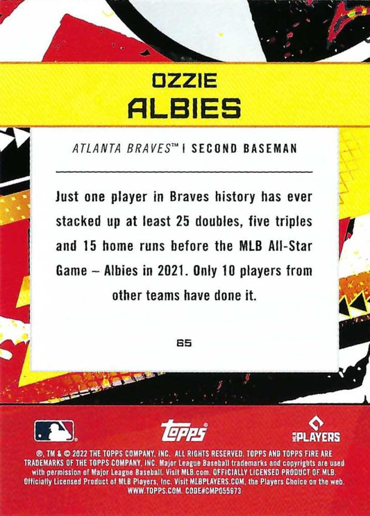 2022 Topps Fire Ozzie Albies Atlanta Braves #65