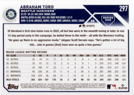 2023 Topps Series 1 Abraham Toro Seattle Mariners #297