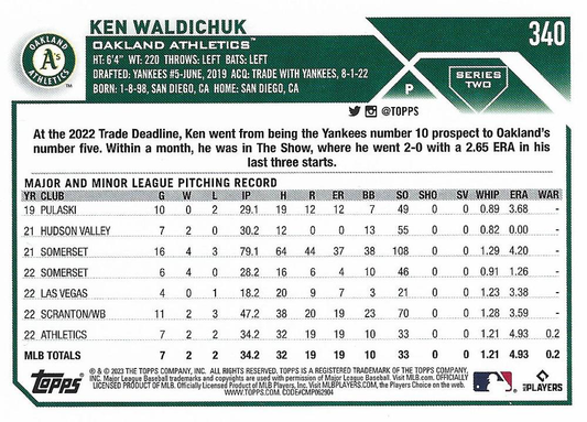 2023 Topps Series 2 Ken Waldichuk RC Oakland Athletics #340