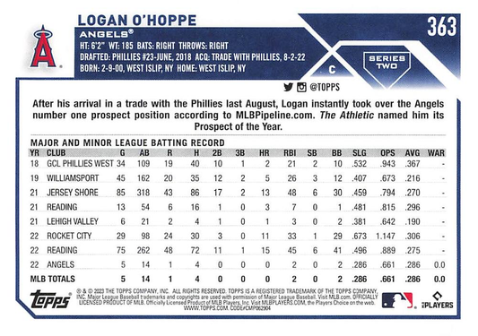 2023 Topps Series 2 Logan O'Hoppe RC Los Angeles Angels #363