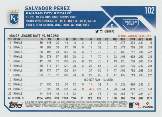 2023 Topps Series 1 Salvador Perez Kansas City Royals #102