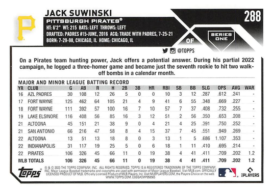 2023 Topps Series 1 Jack Suwinski Pittsburgh Pirates #288