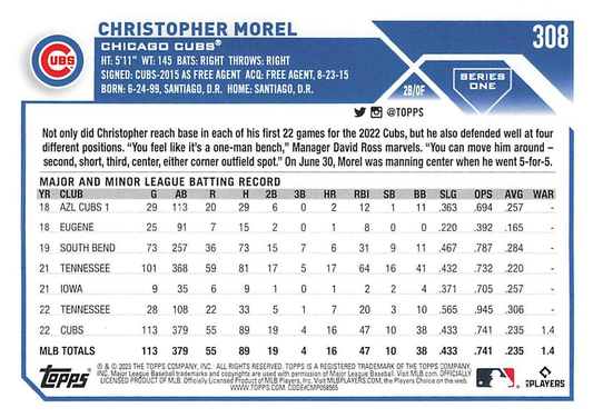 2023 Topps Series 1 Christopher Morel RC Chicago Cubs #308