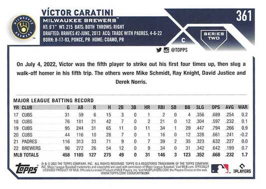 2023 Topps Series 2 Victor Caratini Milwaukee Brewers #361