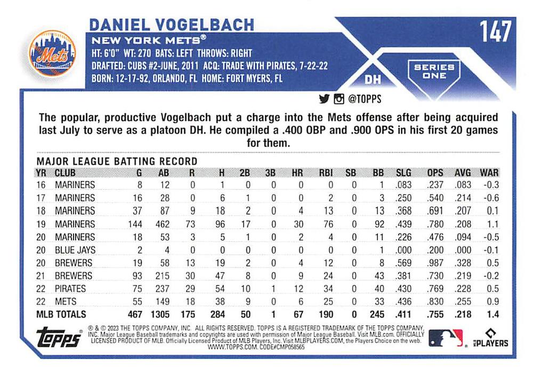 2023 Topps Series 1 Daniel Vogelbach New York Mets #147