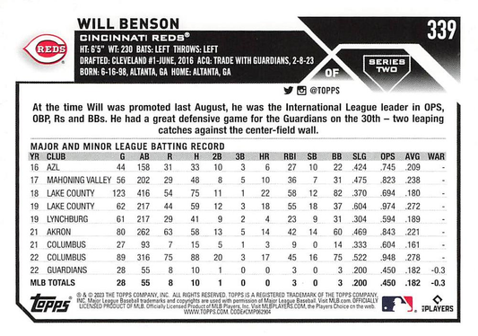 2023 Topps Series 2 Will Benson RC Cincinnati Reds #339