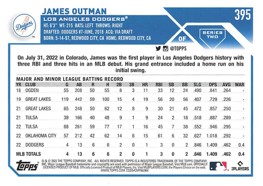 2023 Topps Series 2 James Outman RC Los Angeles Dodgers #395