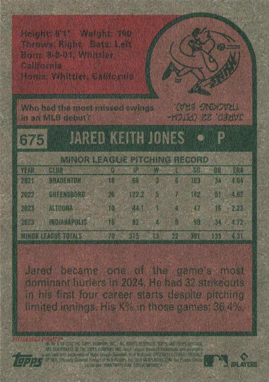 2024 Topps Heritage Jared Jones Pittsburgh Pirates RC #675