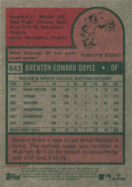 2024 Topps Heritage Brenton Doyle Colorado Rockies #643