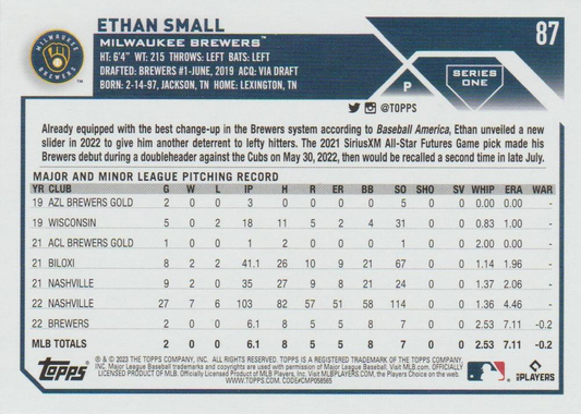 2023 Topps Series 1 Ethan Small RC Milwaukee Brewers #87