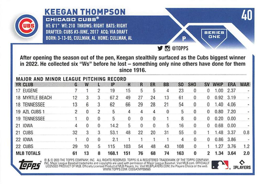 2023 Topps Series 1 Keegan Thompson Chicago Cubs #40