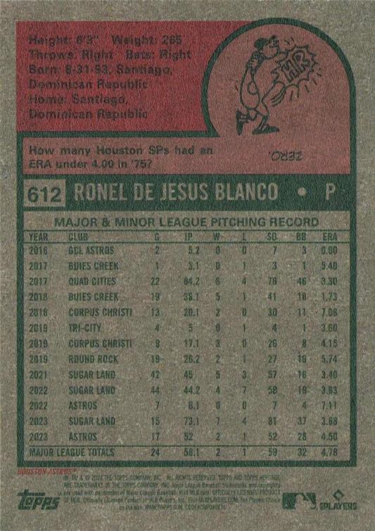 2024 Topps Heritage Ronel Blanco Houston Astros #612