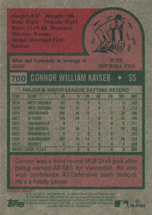 2024 Topps Heritage Connor Kaiser Colorado Rockies RC #700