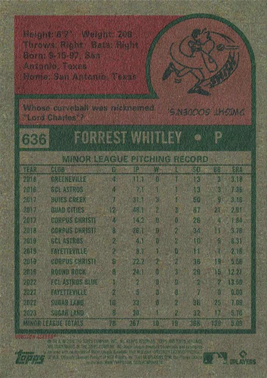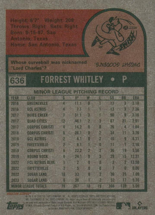 2024 Topps Heritage Forrest Whitley Houston Astros RC #636