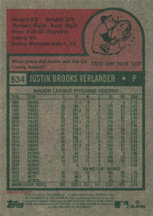 2024 Topps Heritage Justin Verlander Houston Astros #534