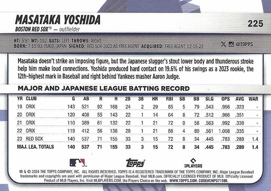 2024 Topps Big League Uncommon Foil Masataka Yoshida SP Boston Red Sox #225