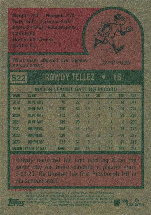 2024 Topps Heritage Rowdy Tellez Pittsburgh Pirates #522