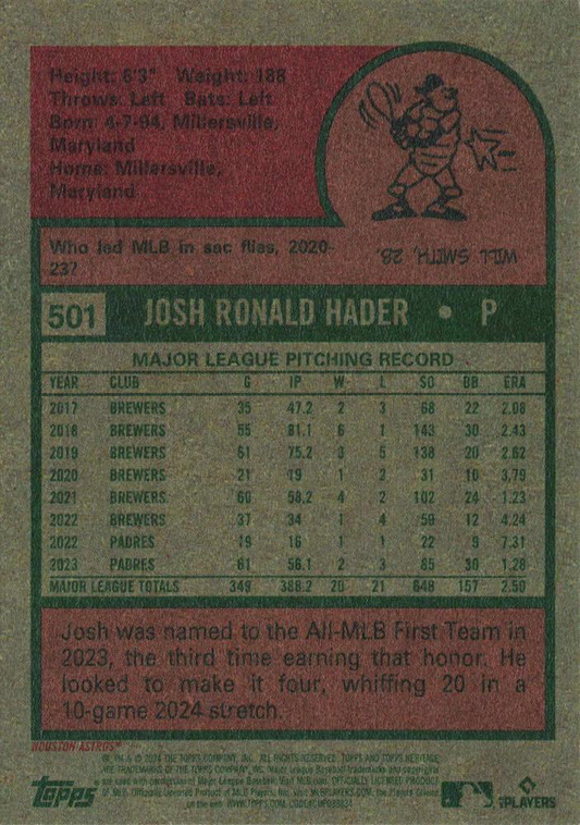 2024 Topps Heritage Josh Hader Houston Astros #501
