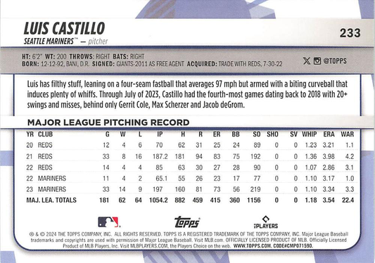 2024 Topps Big League Uncommon Foil Luis Castillo SP Seattle Mariners #233