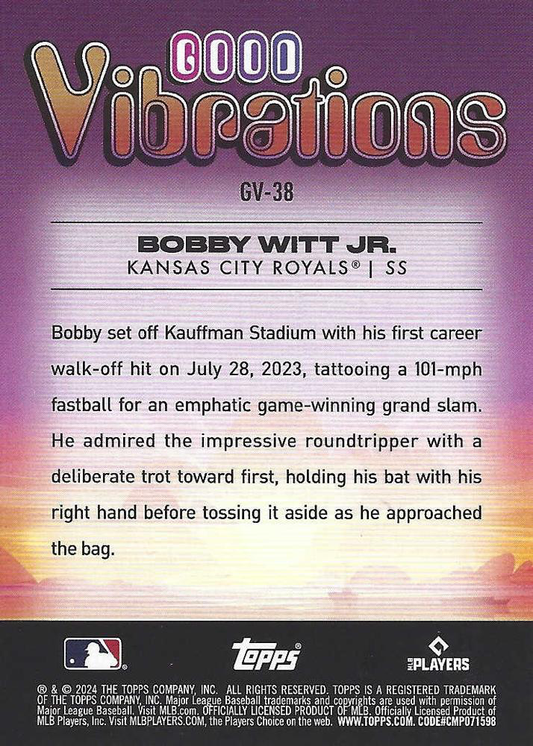 2024 Topps Big League Good Vibrations Bobby Witt Jr. Kansas City Royals #GV-38