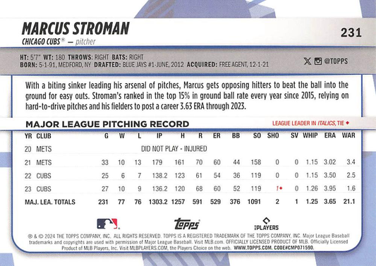 2024 Topps Big League Uncommon Foil Marcus Stroman SP Chicago Cubs #231