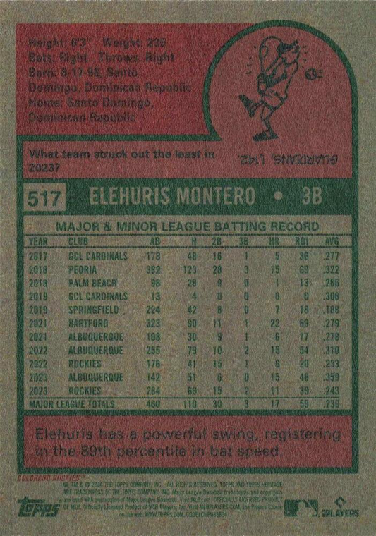 2024 Topps Heritage Elehuris Montero Colorado Rockies #517