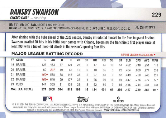 2024 Topps Big League Uncommon Foil Dansby Swanson SP Chicago Cubs #229